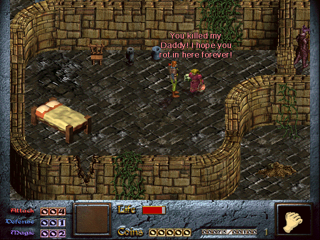 Suddenly, that wizard guy from earlier appears in a puff of magic that I didn't manage to get in a screenshot! He's not pleased with Dink either. This seems to be a trend.