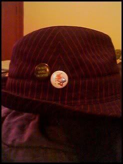 And here is a picture of my pin, which is attached to my Pimp Hat of Awesomeness, rendering it even more awesome.